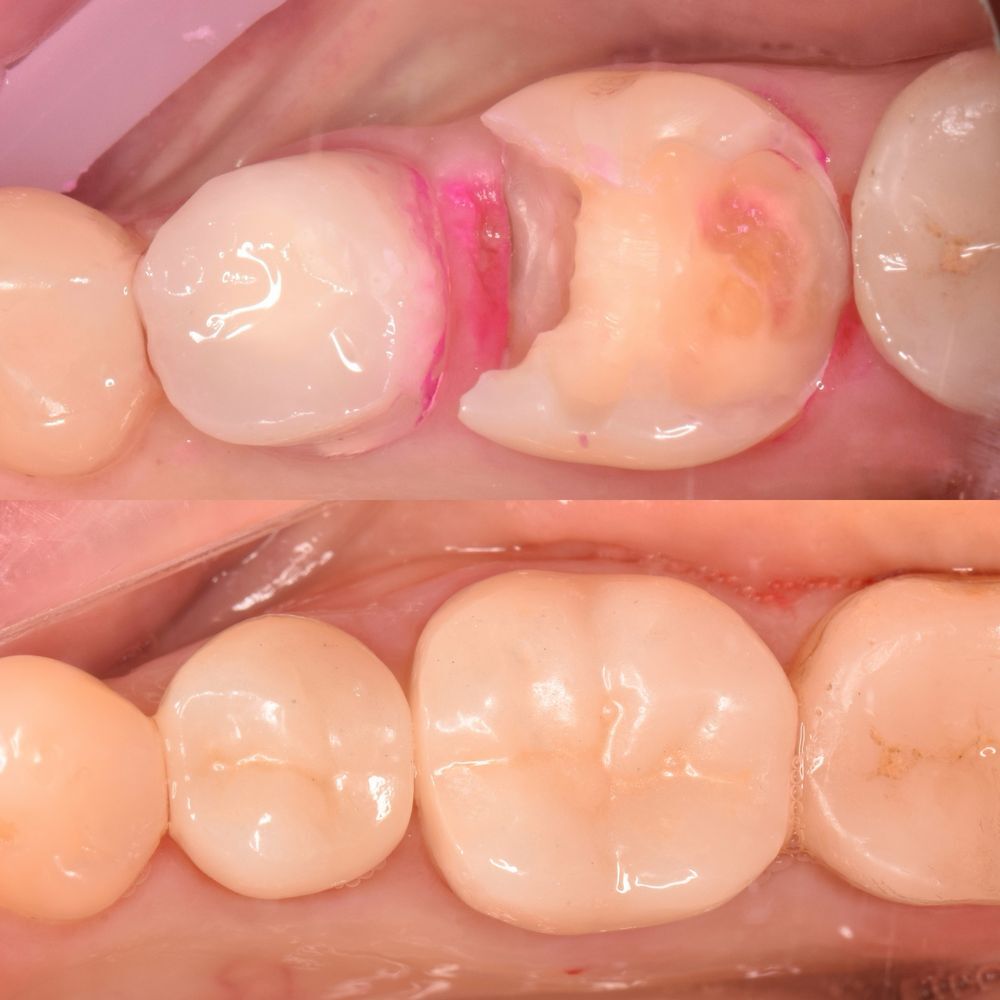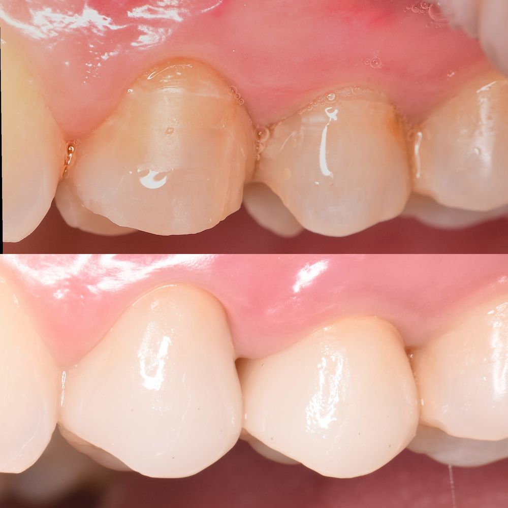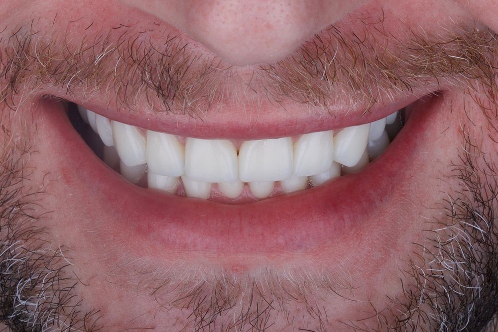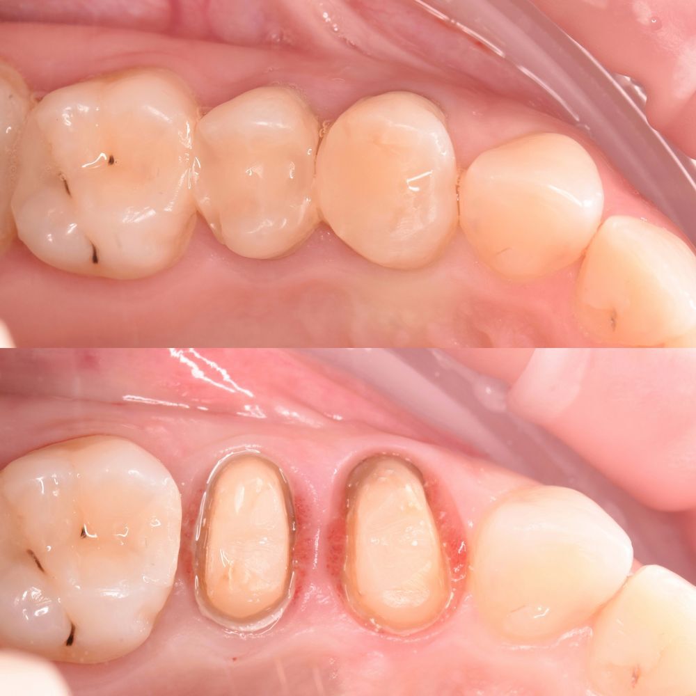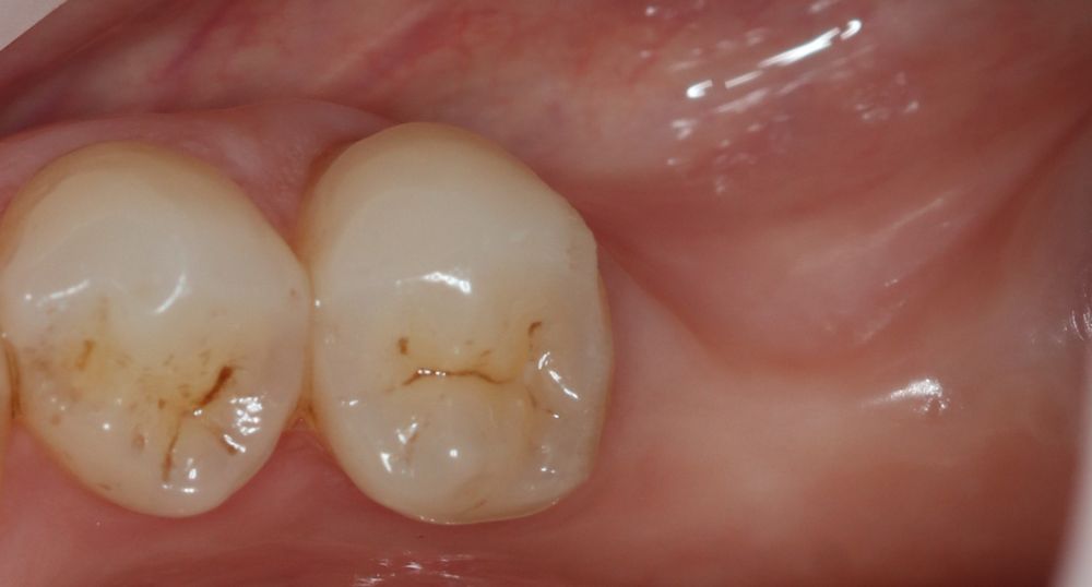 Жалобы: на отсутствие зубов, стираемость и чувствительность зубов, ночное скрежетание зубами, неудовлетворительная эстетика и промежуток между центральными резцами, сколы коронок на имплантатах.